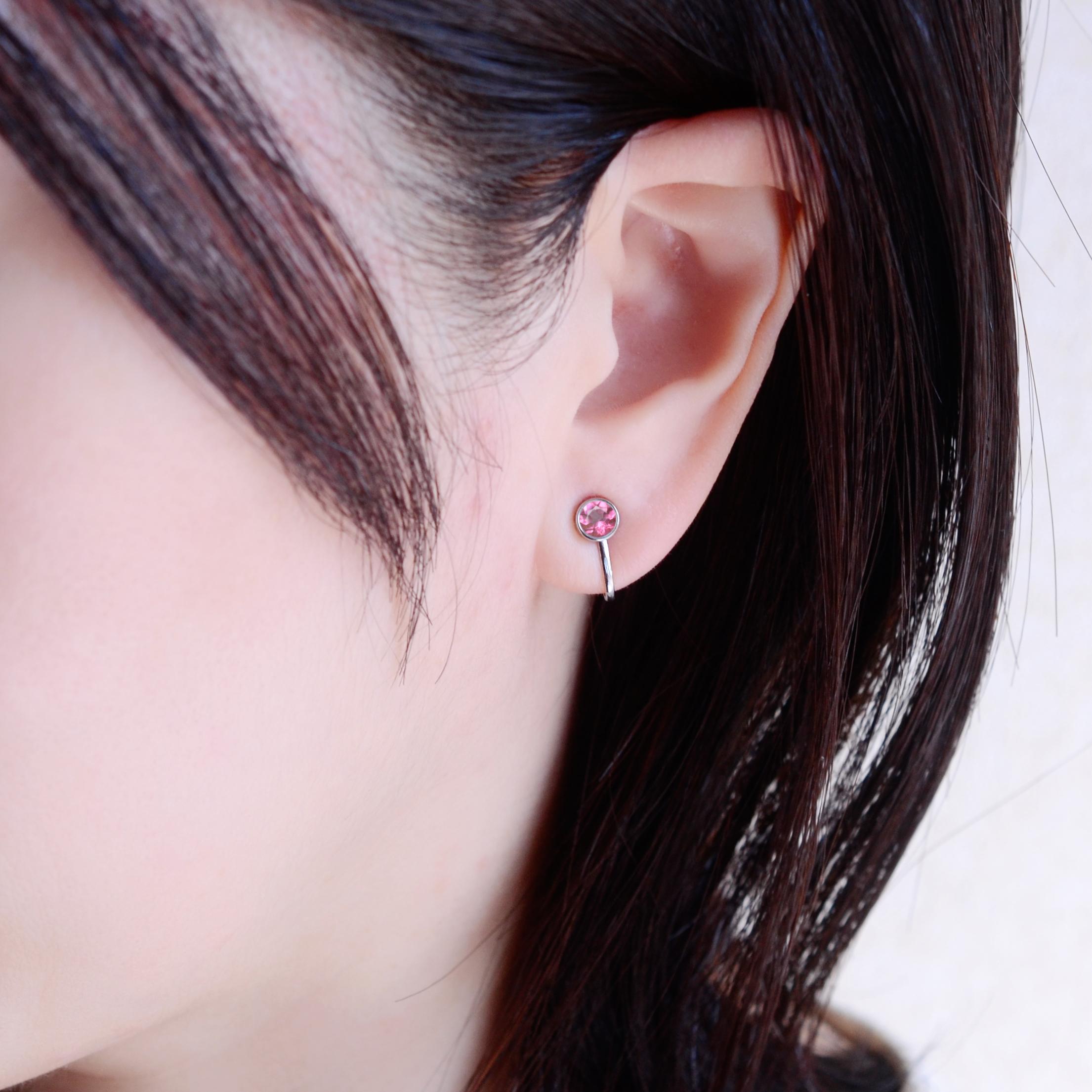 邪魔にならない!イヤリング ピンクトパーズ サージカルステンレス 金属アレルギー 誕生日プレゼント 春 桜色